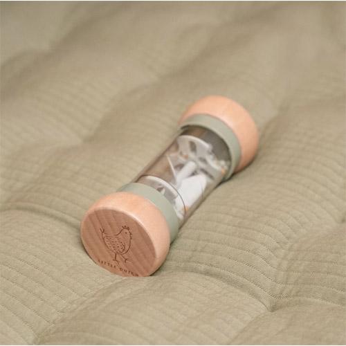 Retournez le hochet de pluie et écoutez le son apaisant des gouttes de pluie tandis que les boules se déplacent d'un côté à l'autre du générateur de pluie.