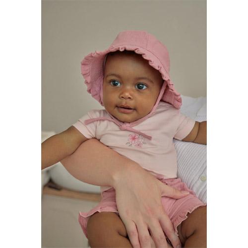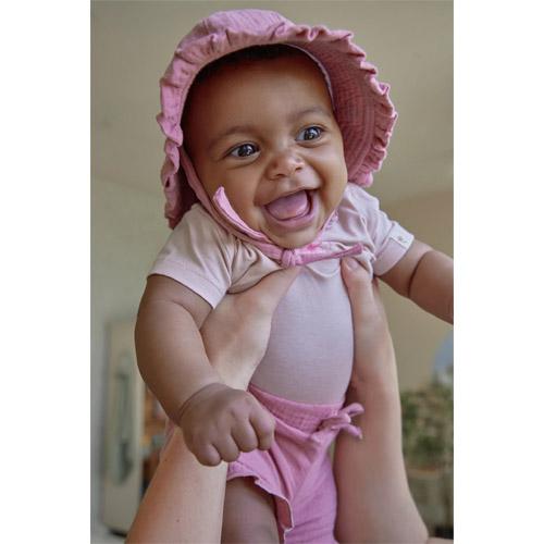 Ce joli chapeau d'été protège votre enfant du soleil et est d'une douceur incomparable.