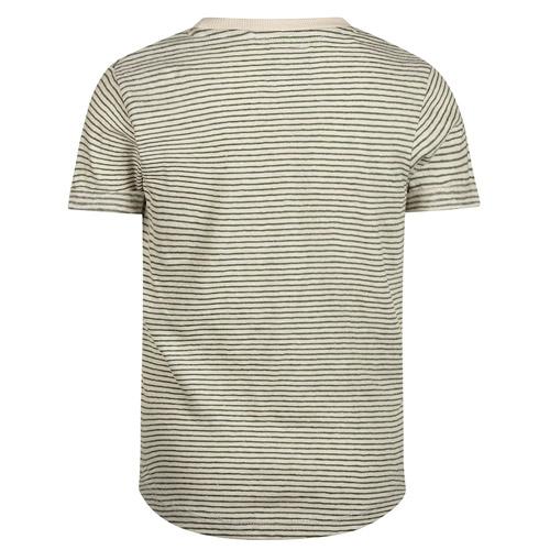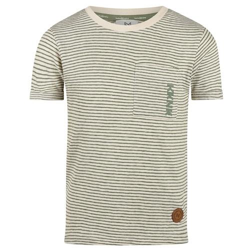 Ce t-shirt rayé Koko Noko vert olive et blanc cassé est un choix frais et stylé pour les garçons cet été.