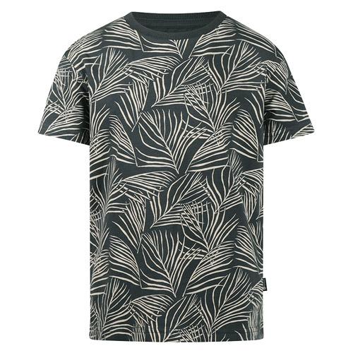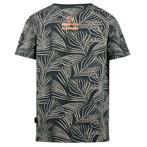 Le t-shirt No Way Monday, de couleur anthracite rehaussée de touches corail, arbore un imprimé de feuilles sur toute la surface qui dégage immédiatement une ambiance estivale.