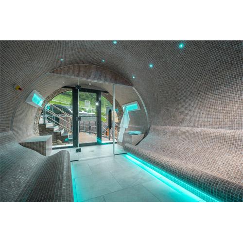 Wanden en plafond in hard schuim isolatie 90 mm betegeld met Ezzari mozaïek.
