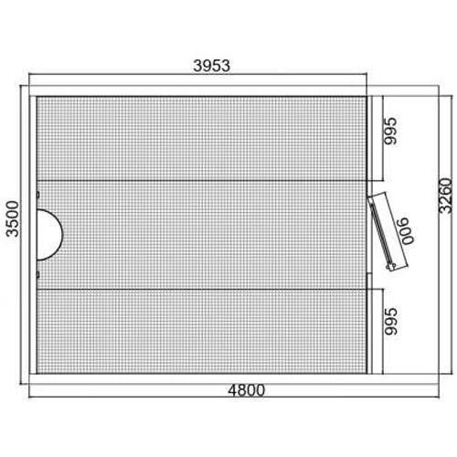 Glazen voorwand in dubbel isolerend helder gehard glas in aluminium kader.
