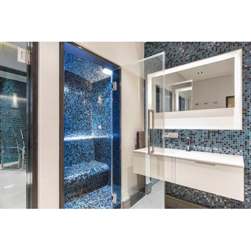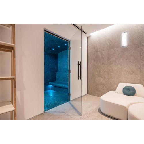 Glasdeur 2005 x 714 mm in 8 mm gehard glas in aluminium frame met luxe scharnieren.