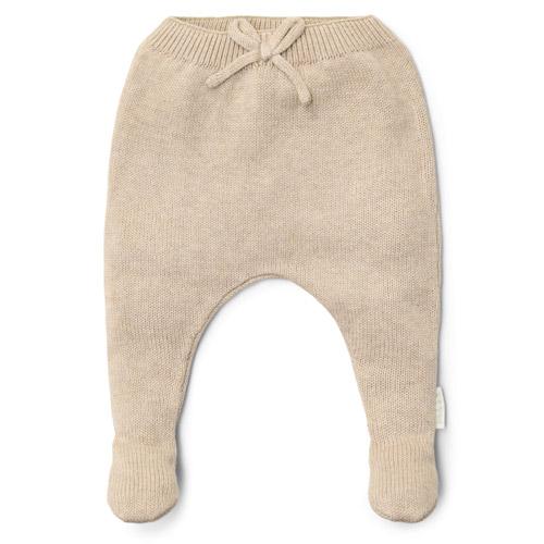 Deze heerlijk zachte broek met voetjes in zandkleurig gemêleerd breisel is een must-have voor koude dagen.