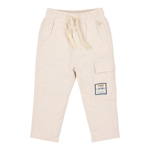 Deze zachte broek in zandkleur is perfect voor kleine avonturiers.