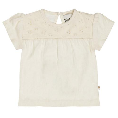 Lief en luchtig : dit off-white Dirkje t-shirt met broderie bovenstuk is een echt blikvanger.