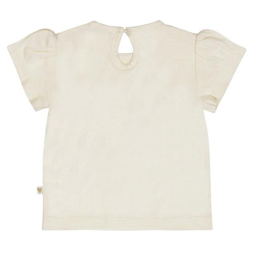 Het meisjes t-shirt heeft een klein pofmouwtje en sluit achter in het nekje met knoopjes.