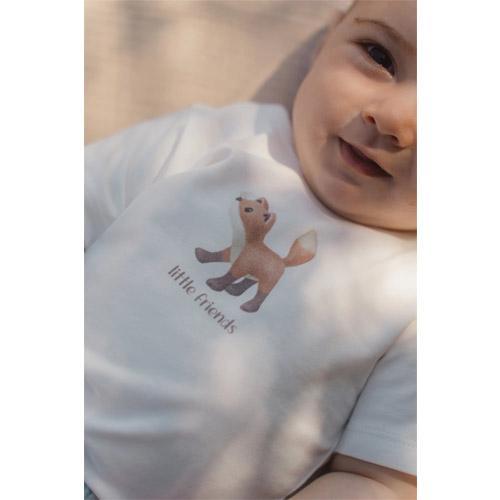 Dit zachte witte shirt met korte mouwen is liefdevol ontworpen met een schattige vos op de borst.