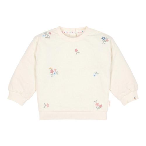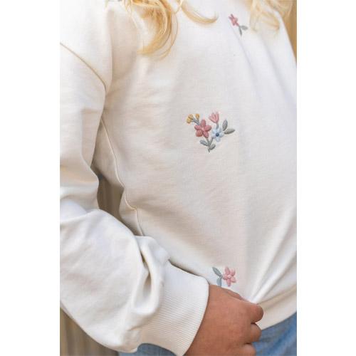 Deze zachte sweater in frisse witte tint is versierd met lieve bloemenborduursels.
