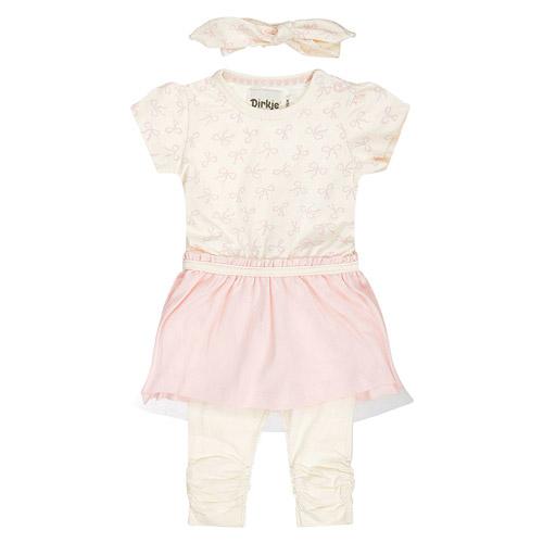 Suit Dirkje pebble 3-piece, dress, pants and bow white/pink
