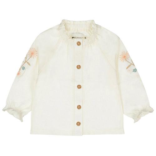 Blouse Dirkje white with flowers on the sleeves