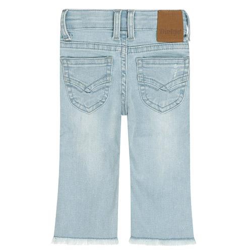 The jeans are comfortable thanks to the stretch, and the slightly flared legs with a frayed hem make them extra cute for little girls.