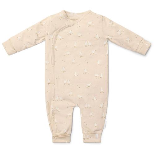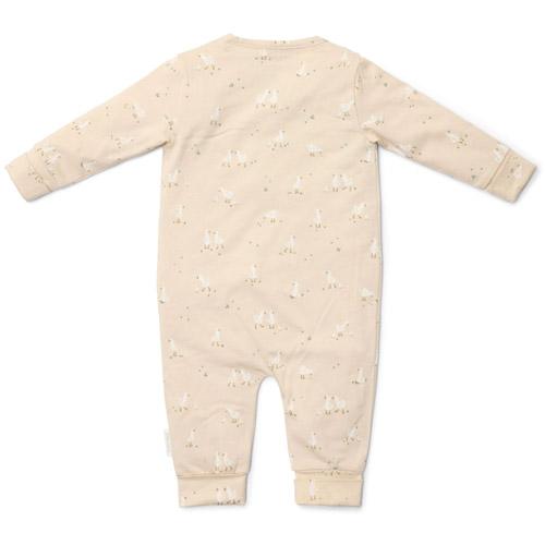 This adorable romper in sand color with a playful Little Goose print is a warm and cozy choice for your little one.