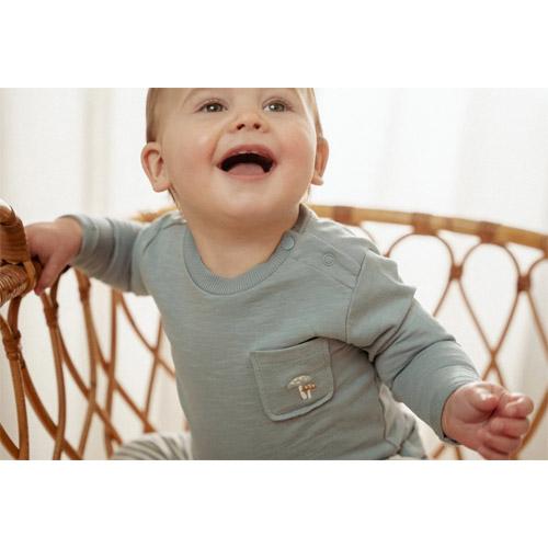 In this charming Stone Blue t-shirt with long sleeves, you are all set for a woodland adventure.