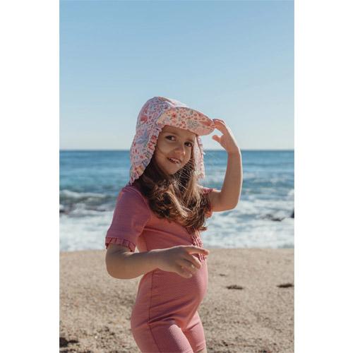 This Pink Dreamy Mermaid swim cap  protects your little one from the sun thanks to the fixed neck cover, which also covers the neck well.