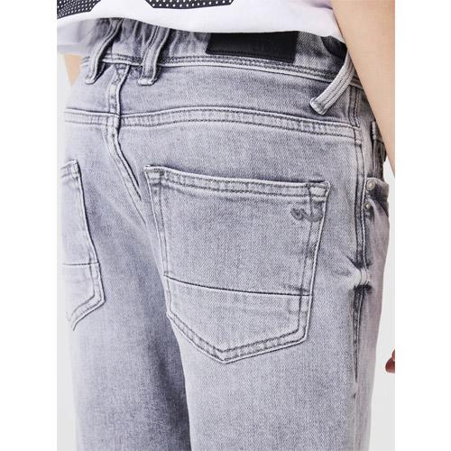 Give your son's wardrobe a stylish upgrade with the Lance B mid-waist slim fit light grey jeans bermuda.