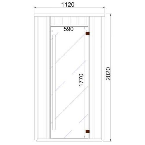 - Tinted safety glass door 1770 mm x 590 mm x 8 mm with brown hinges and cedar handle.