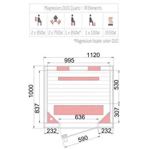 Infrared cabin CHALEUR 112 cm x 100 cm x 200 cm
