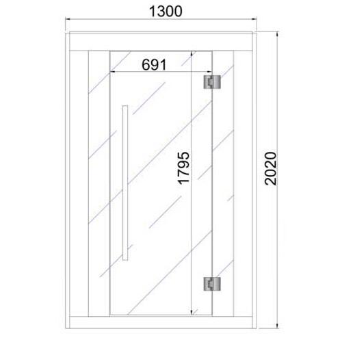 - Clear safety glass front with door 1790 mm x 691 mm x 8 mm including stainless steel hardware.