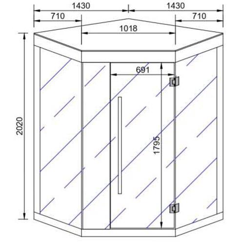 - Clear safety glass front with door 1790 mm x 691 mm x 8 mm including stainless steel hardware.