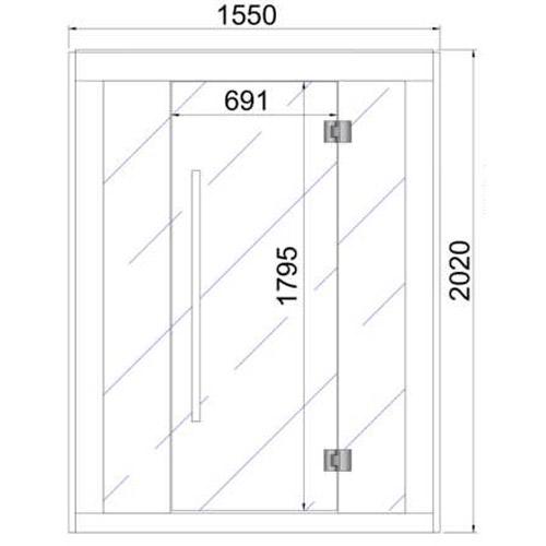 - Bright safety glass front with door 1790 mm x 691 mm x 8 mm including stainless steel hardware.