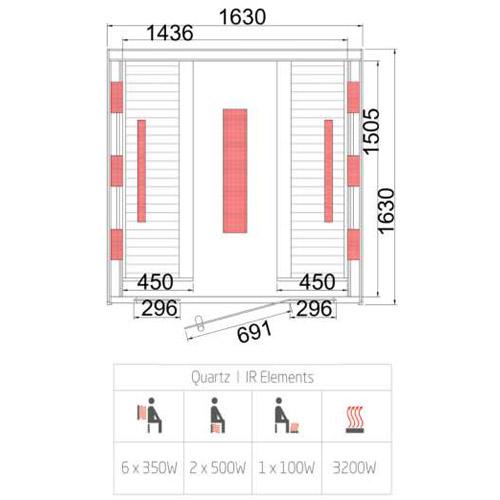 Infrared cabin CHALEUR DE LUXE 163 cm x 163 cm x 200 cm