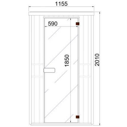 - Tinted safety glass door 1850 mm x 590 mm x 8 mm with brown hinges and cedar handle.