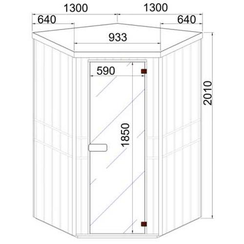- Tinted safety glass door 1850 mm x 590 mm x 8 mm with brown hinges and cedar handle.