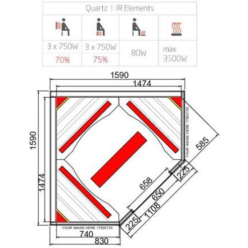 Infrared cabin INTENS 160 cm x 160 cm x 198 cm