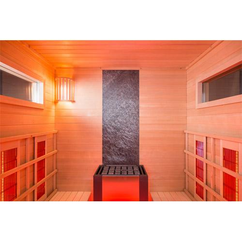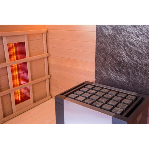 Combi infrared and sauna cabin promotes circulation as well as muscles and joints.