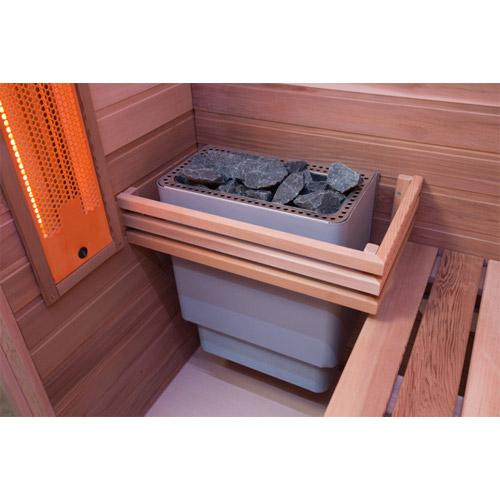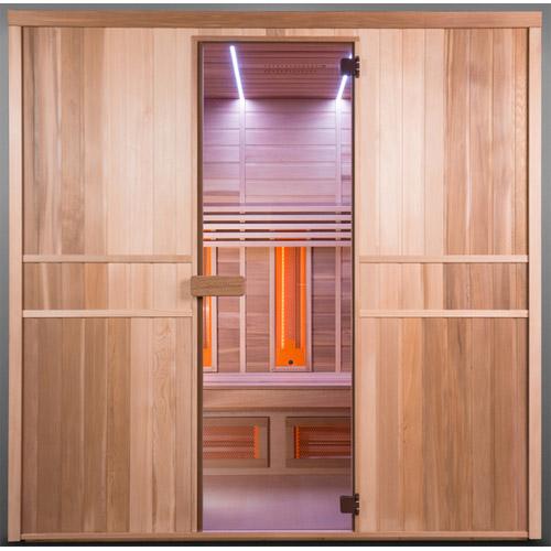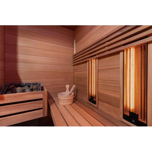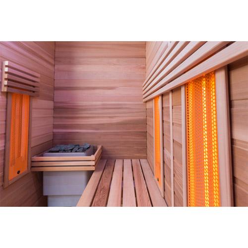 Combi infrared and sauna cabin promotes circulation as well as muscles and joints.