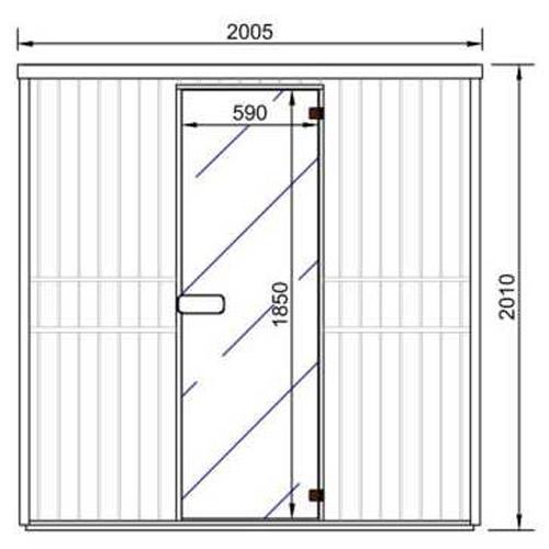 - Tinted safety glass door 1850 mm x 590 mm x 8 mm with brown hinges and cedar handle.