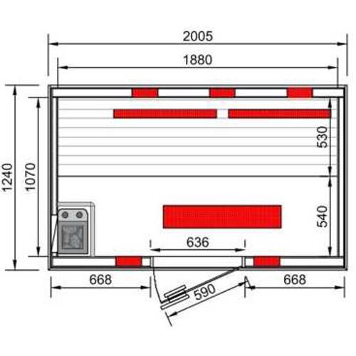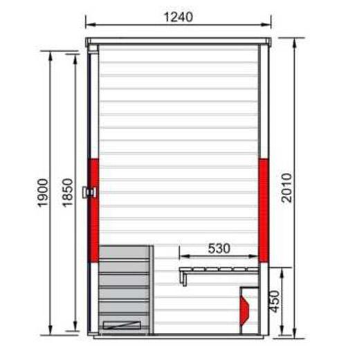 - Sauna oven 3 kW with integrated control.