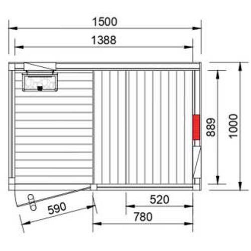 - Glass front and sides in clear tempered glass 8 mm thick, inclusief door 1850 mm x 590 mm x 8 mm, stainless steel handle outside and wood inside.