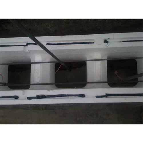 Les blocs en polystyrène creux du coffrage sont placés rapidement et soigneusement grâce à un système de languettes et de rainures.