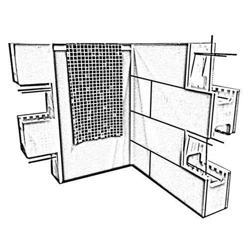 - 0,14 m³ de béton par m² de blocs coffrant.