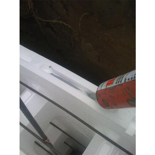 - Lay the first row of polystyrene building blocks in a mortar bed.