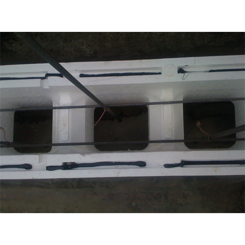 The formwork hollow polystyrene blocks are placed quickly and carefully via a tongue and groove system.