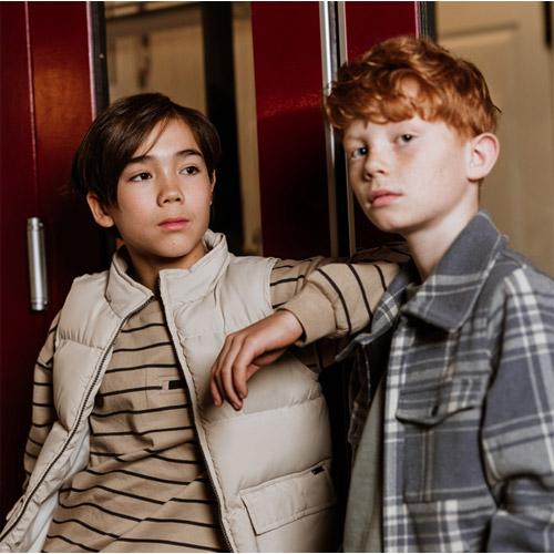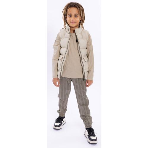 This light gray boys bodywarmer is padded for extra warmth and features handy flap pockets and a collar.