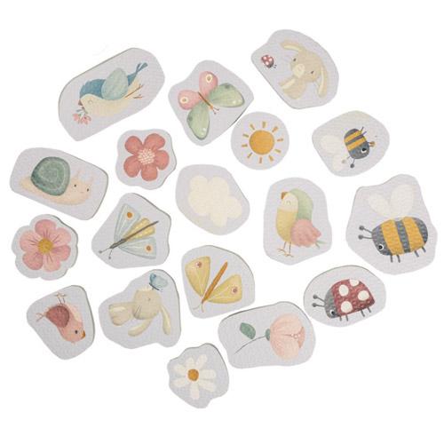 This set of 18 foam bath toys is decorated with the beautiful illustrations of the Flowers & Butterflies collection.