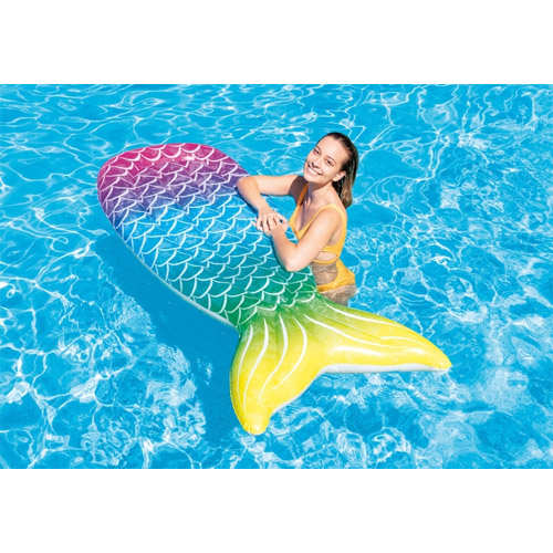 Pretend you are a real mermaid during an afternoon of water fun in the pool with the mermaid tail air mattress from Intex.