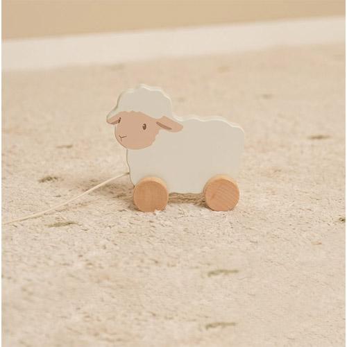Pull this cute sheep along on the string and he will happily hop along with you.