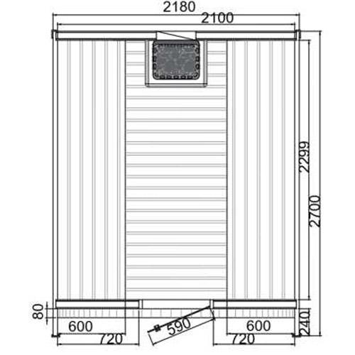 - Door in tinted, tempered glass 1770 mm x 590 mm x 8 mm.