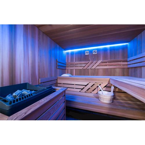 - Indirect LED light in false ceiling, including sauna lamp.