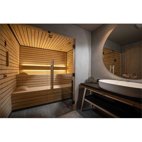 The sauna cabin promotes blood circulation and respiration, and is made of durable wood.