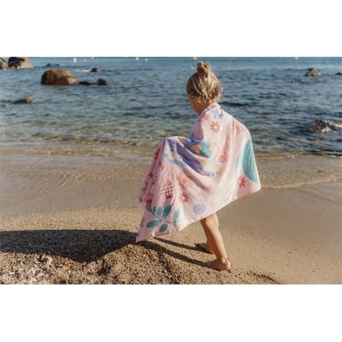 After a day of splashing fun , this soft pink Dreamy Mermaid beach towel is exactly what your little one needs.