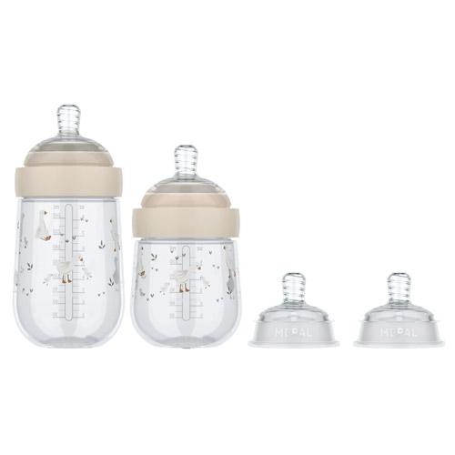 This set includes two bottles 165 ml and 240 ml and two medium-flow teats, perfect for gentle feeding and to support your baby's growth.