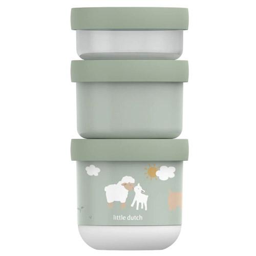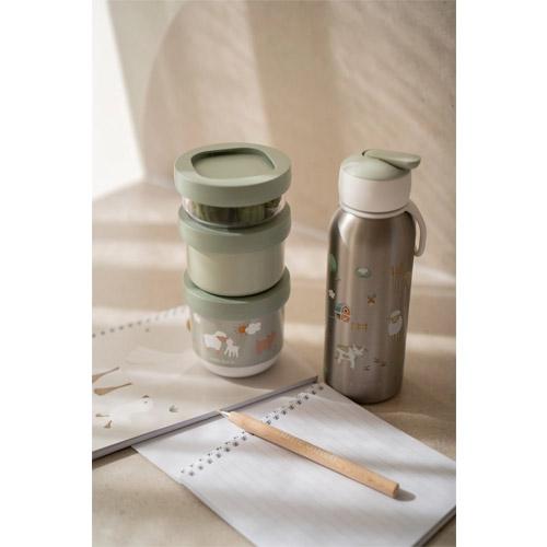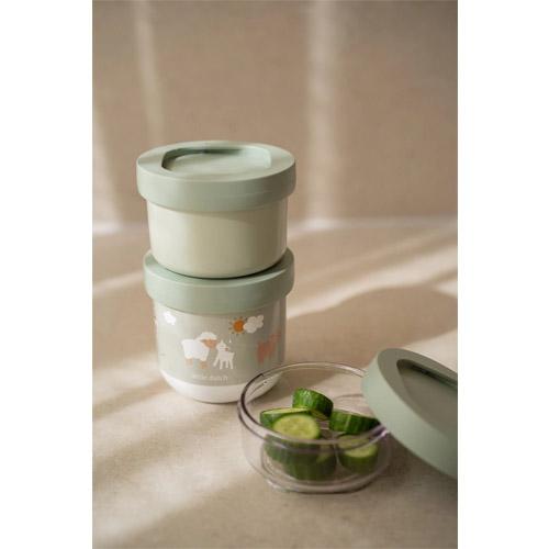 The 3-piece stackable snack box with the playful Little Farm print from Little Dutch is perfect for on the go.