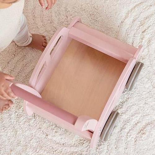 This pink wooden wagon with subtle floral details and a touch of vintage charm is perfect for little adventurers.