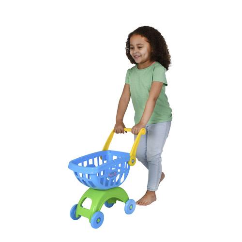 With this set, children can go shopping in their own mini supermarket: shopping cart, cash register, payment terminal, fake money, and bank card.